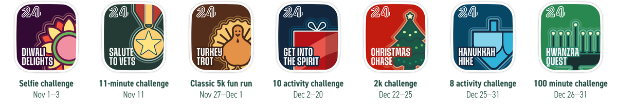 Get into the spirit this holiday season and get moving—build streaks, take on new challenges, and participate in virtual events