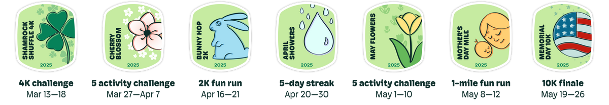Stay motivated with fun challenges throughout the season. Earn a badge for each you complete.